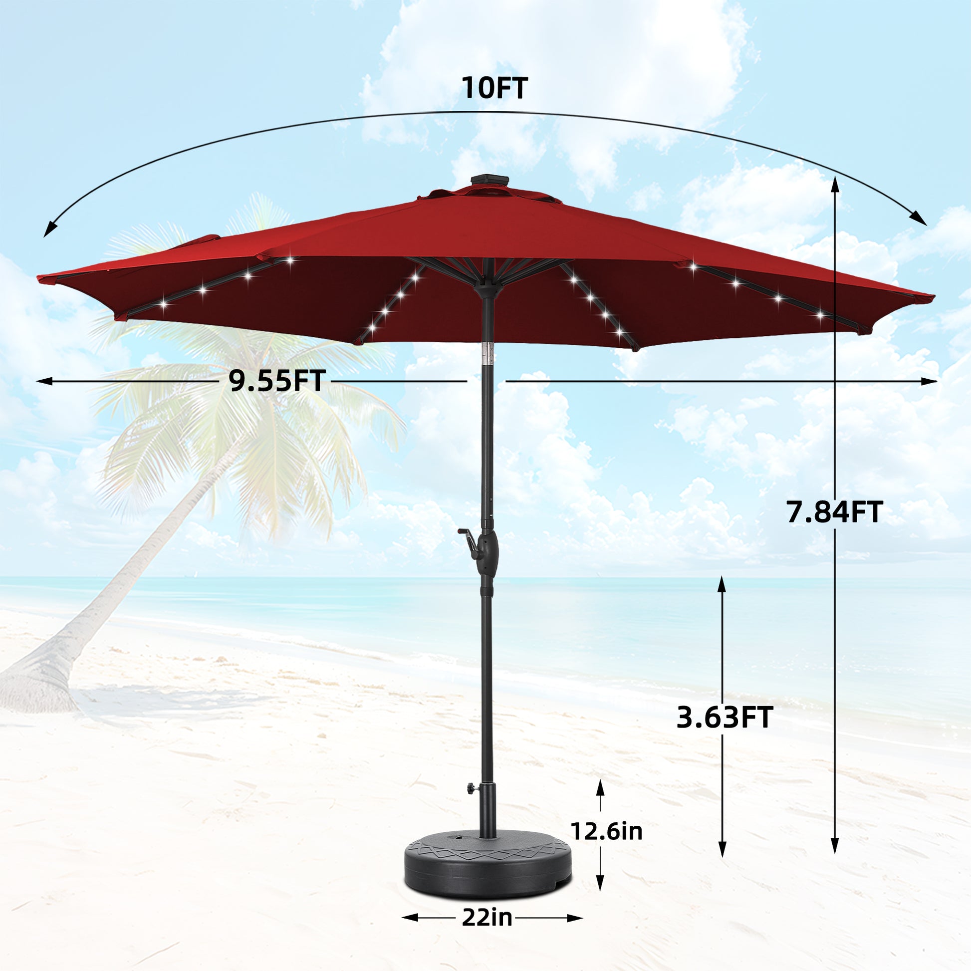 Included Base-Designed with a robust base to provide stability and support for your umbrella. Simply place your umbrella into the base for quick setup and takedown, allowing you to enjoy shade in seconds.