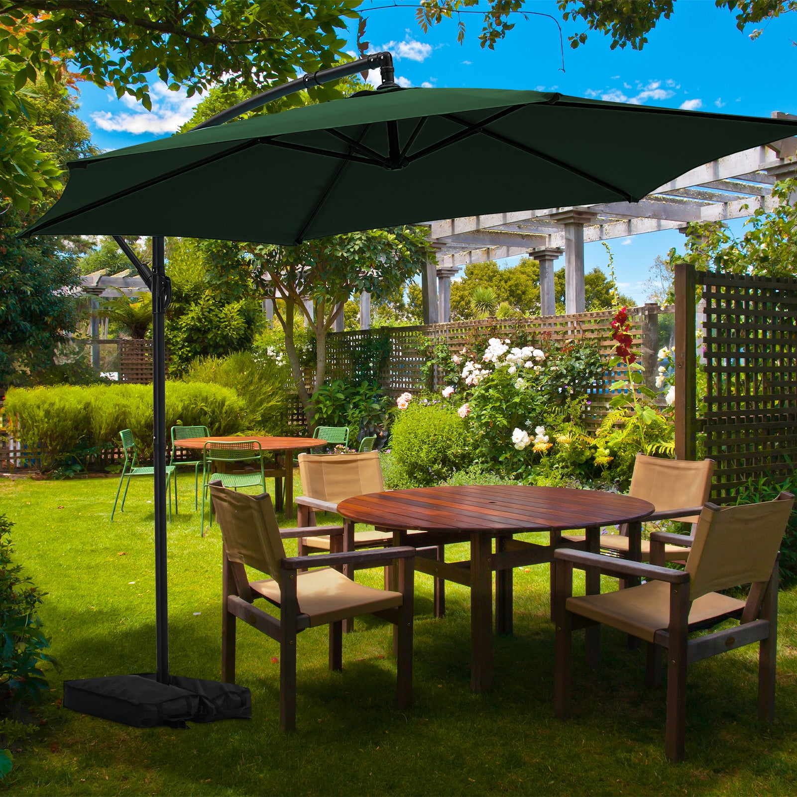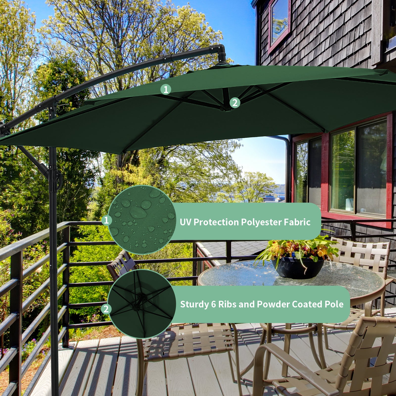 Autlaycil 10FT Cantilever Patio Umbrella, Hanging Offset Umbrella with Umbrella Stand, Green