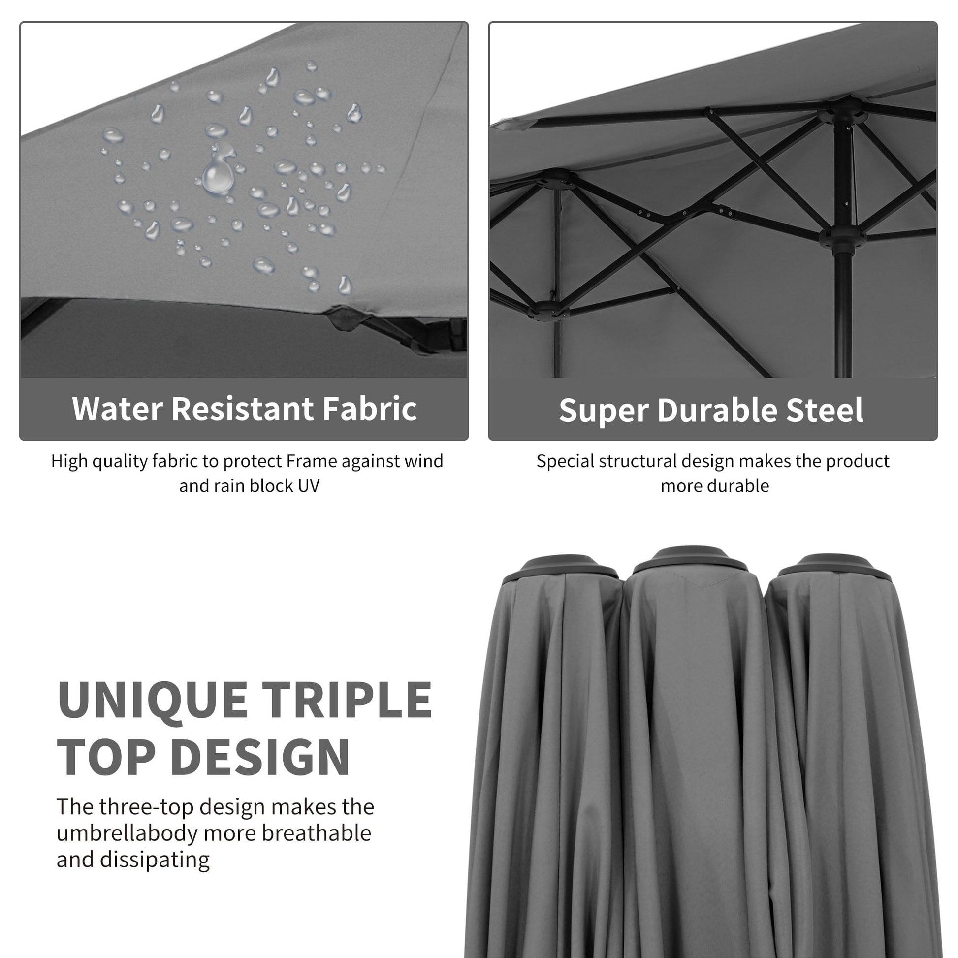 Durable and sturdy materials - Constructed with a heavy-duty anti-oxidation spray painted rust-resistant steel pole paired with 12 durable steel ribs supporting the umbrella top to provide stronger support. In addition, the premium breathable fade-resistant polyester fabric blocks most of the sunlight and provides ample shade to keep you cool and comfortable while you enjoy the sunny day.
