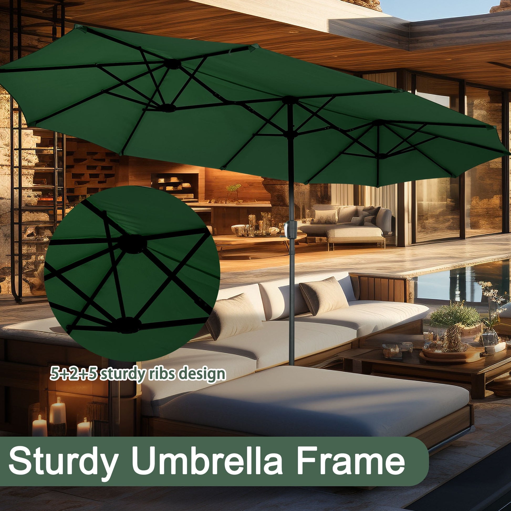 Autlaycil 13 ft Rectangle Patio Umbrella with Crank, Outdoor Market Umbrella with Umbrella Base (Green)