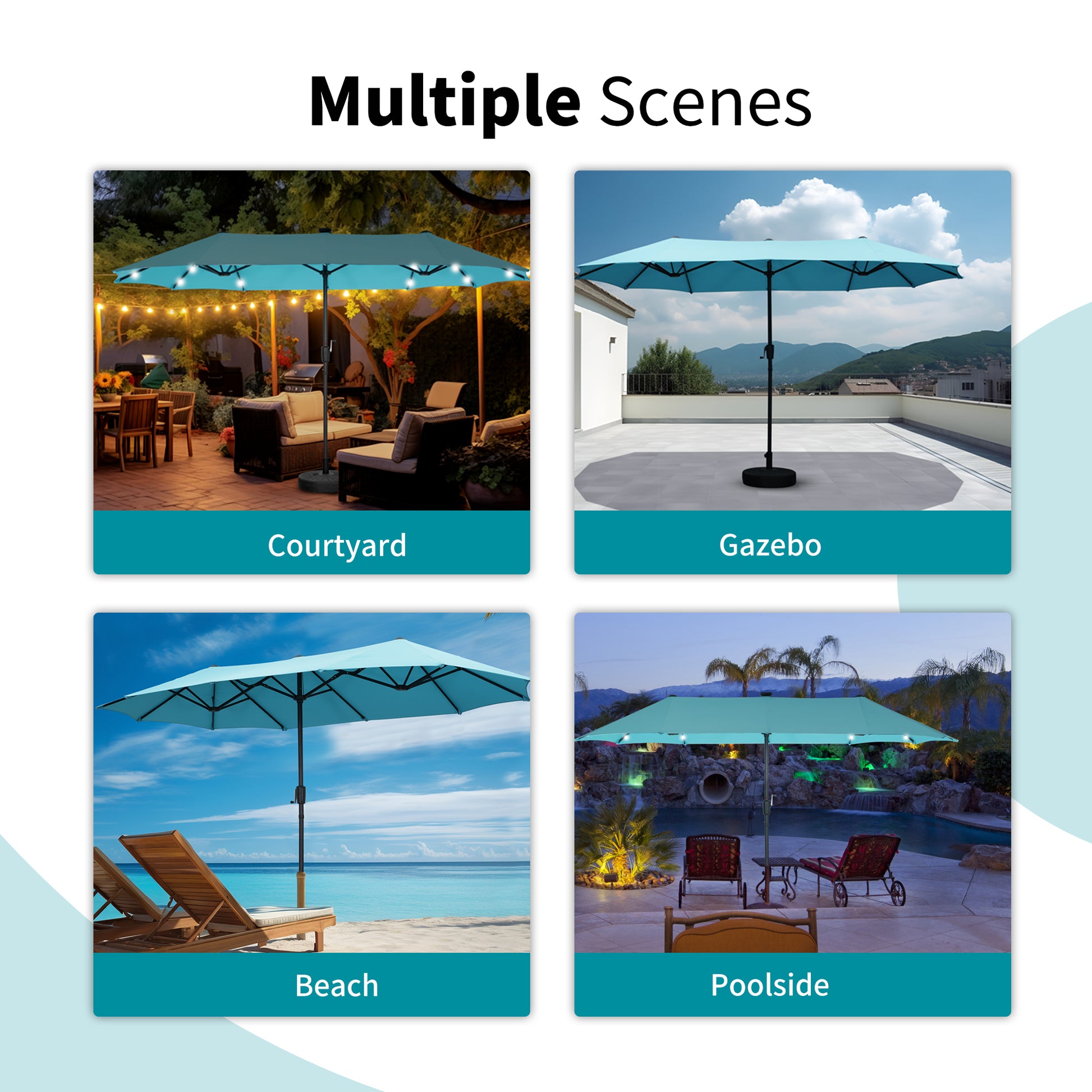 Autlaycil 13 ft Rectangle Patio Umbrella with Umbrella Base 36 LED lights for Market Patio Solar Umbrella (Blue)