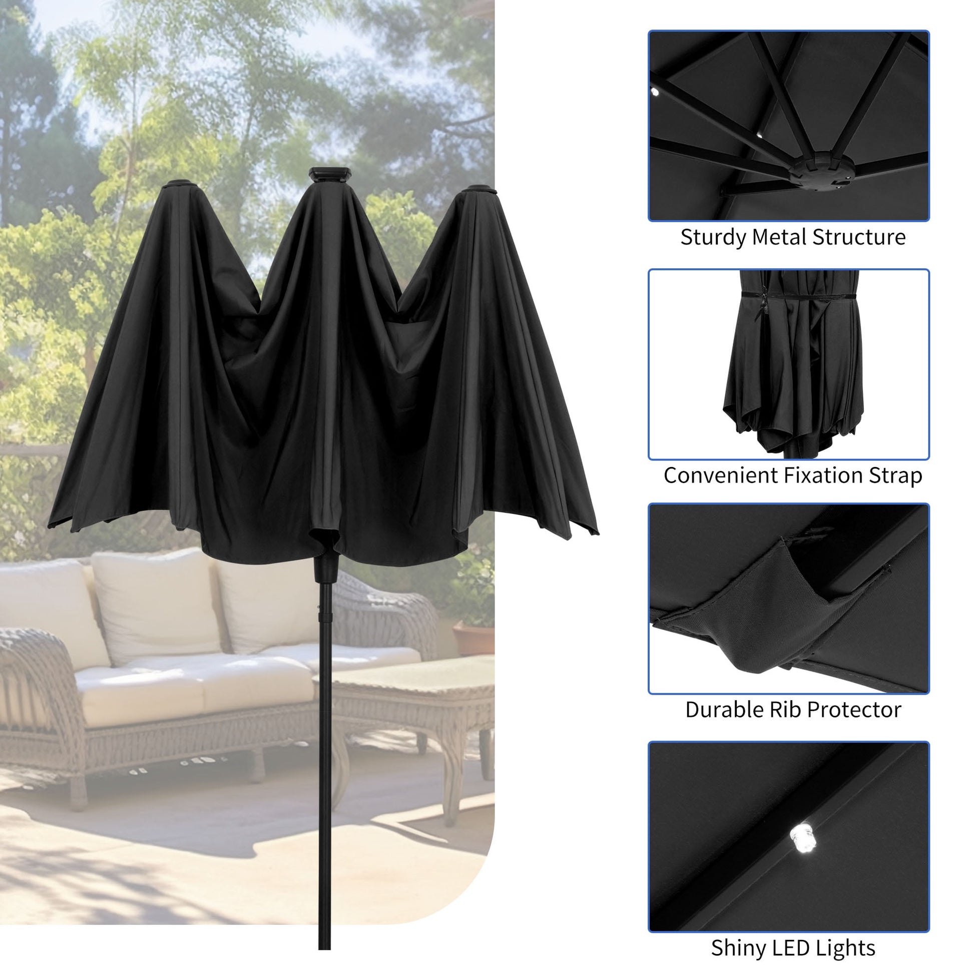 Autlaycil 13 Ft Solar LED Patio Umbrella, 36 Solar Powered LED Lights & Crank System for Garden, Deck, Poolside, Patio, Black