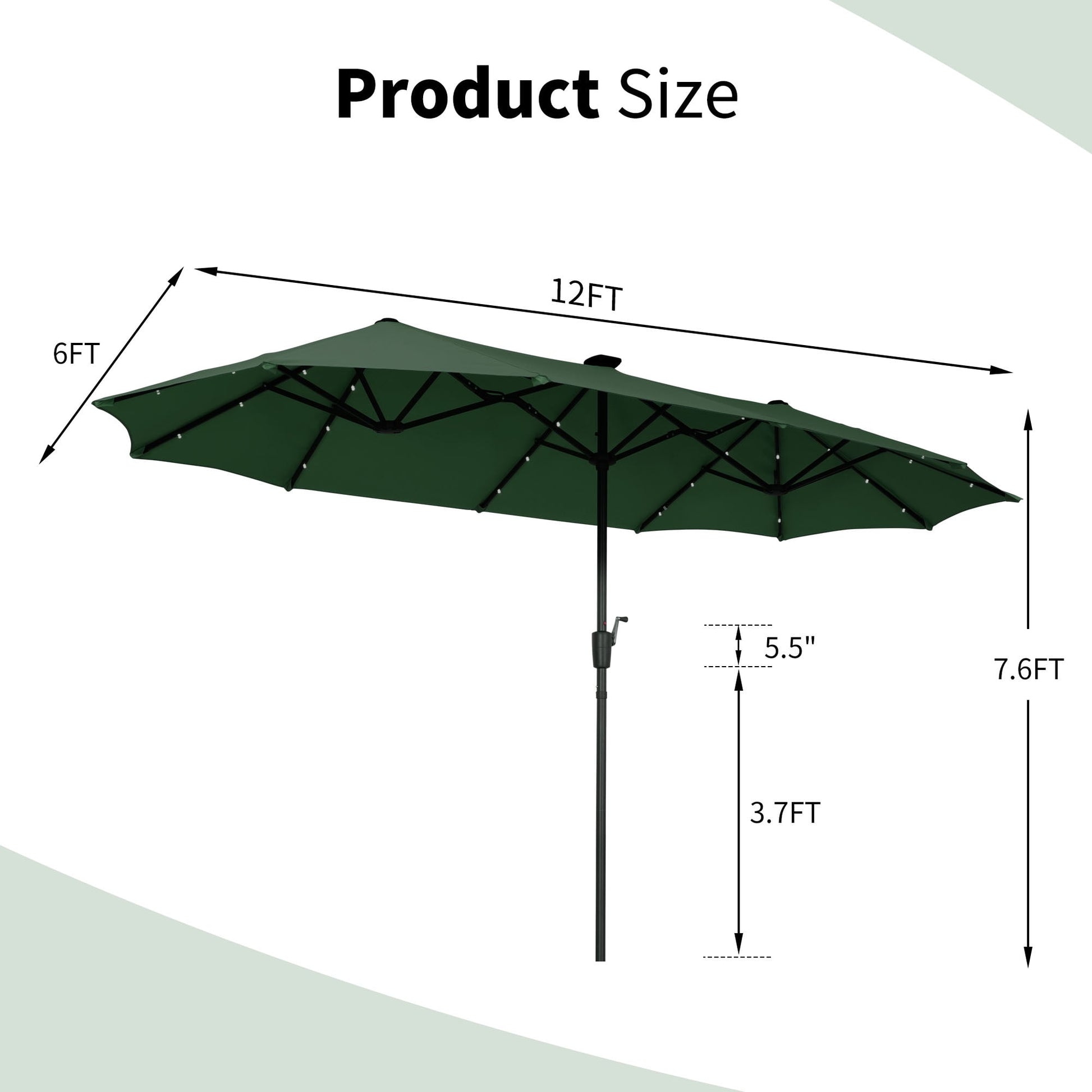 Autlaycil 13 Ft Solar LED Patio Umbrella, 36 Solar Powered LED Lights & Crank System for Garden, Deck, Poolside, Patio, Green
