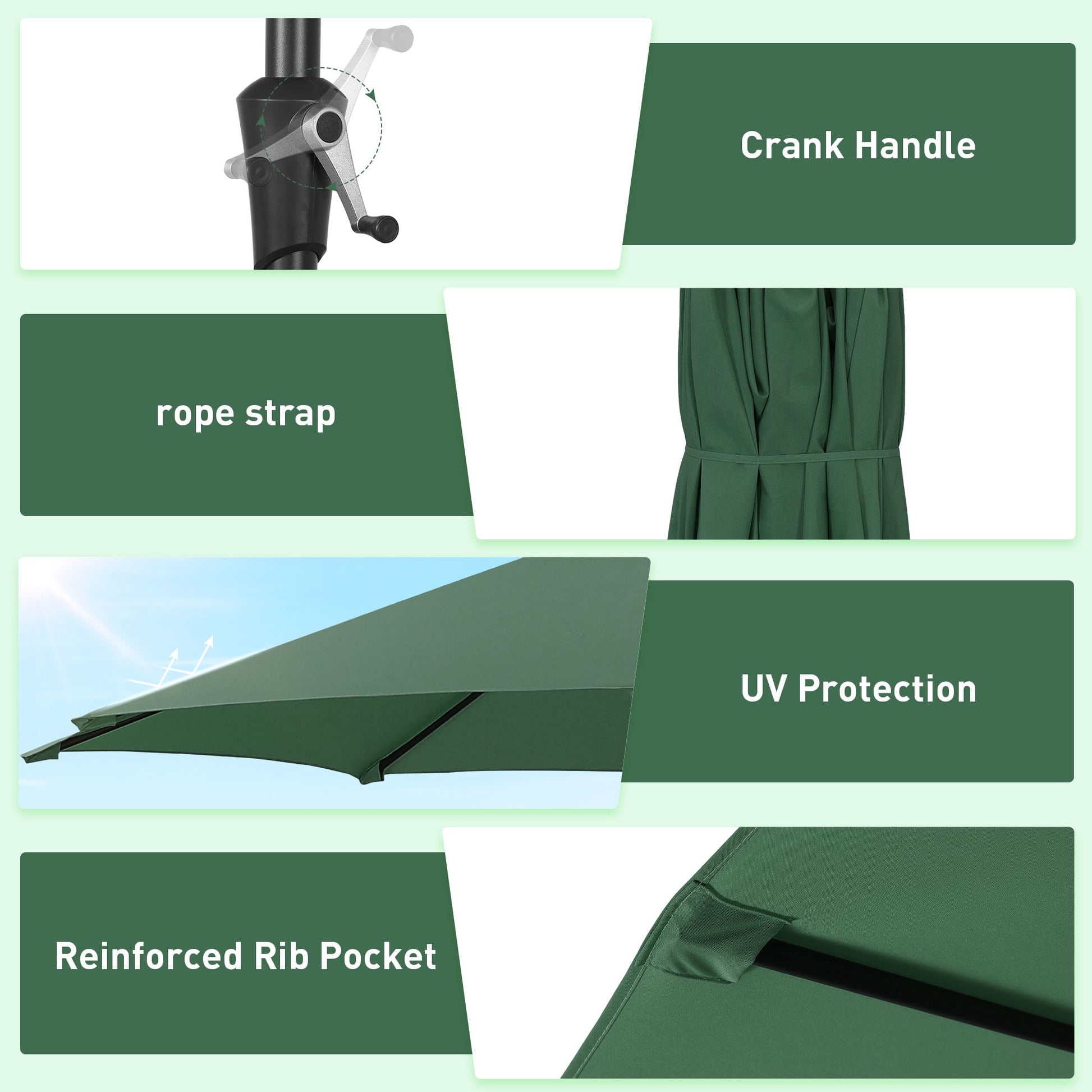 Autlaycil 15 ft Rectangle Patio Umbrella with Umbrella Base, Crank, Outdoor Market Umbrella (Green)
