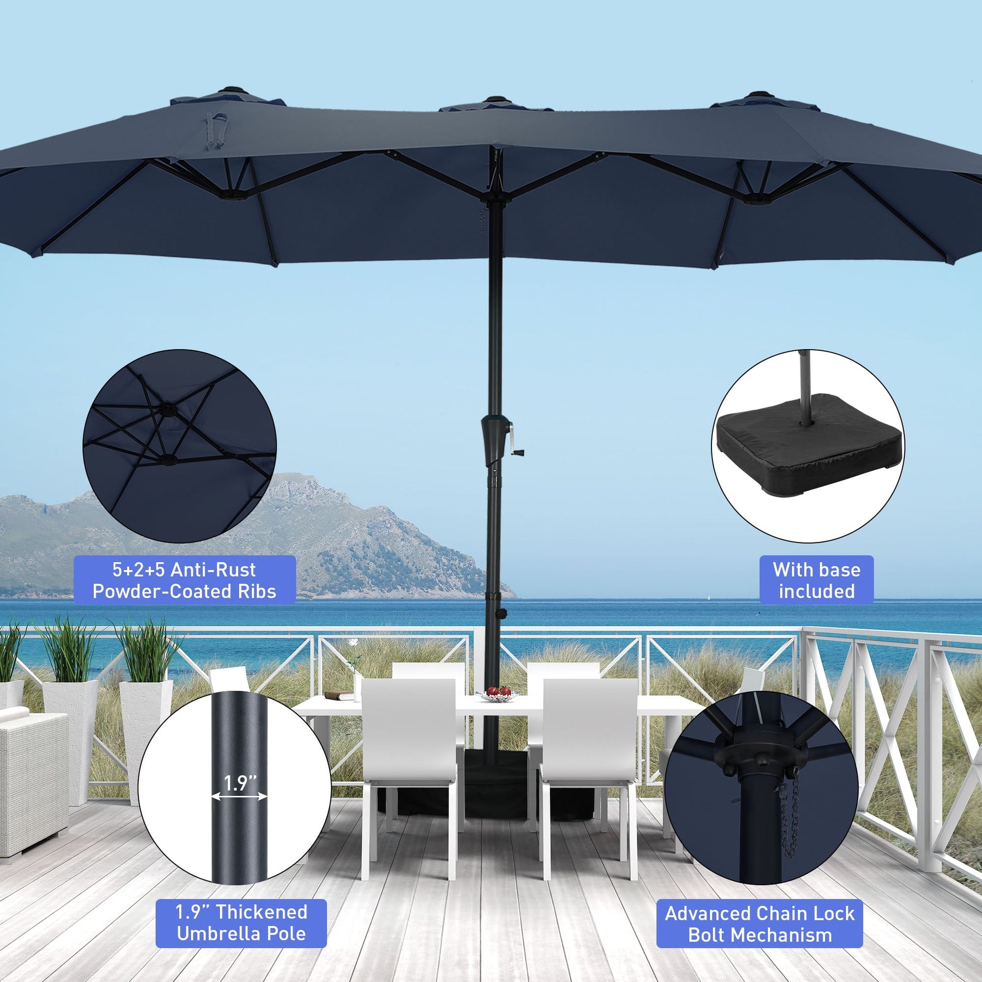 Autlaycil 15 ft Rectangle Patio Umbrella with Umbrella Base, Crank, Outdoor Market Umbrella (Navy Blue)