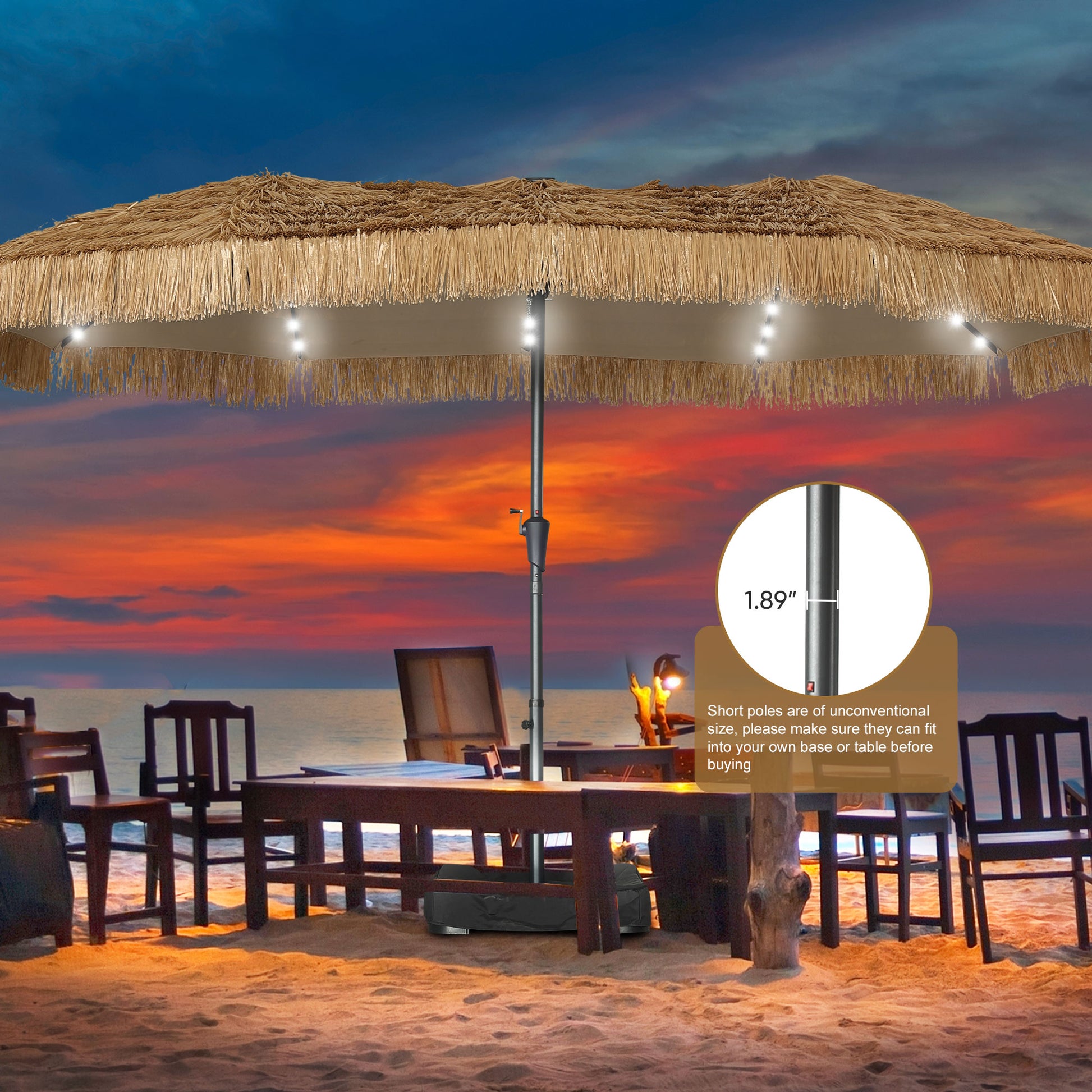 ¡¾Hawaiian/Bohemian Style¡¿ Whether you¡¯re lounging by the pool, hosting a backyard BBQ, or sipping cocktails on the deck, our tiki umbrella is more than just shade¡ªit¡¯s a statement. Its timeless thatched design adds a touch of island paradise to any space, while its cutting-edge features ensure it¡¯s as functional as it is beautiful