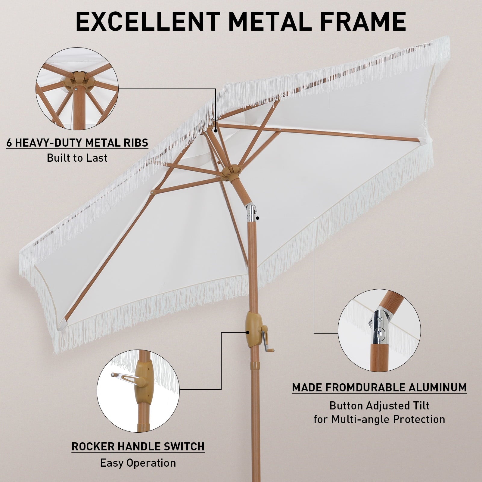 Autlaycil 5 Pcs Patio Outdoor Furniture Sets Contains 2 Textilene Fabric Rocking Bistro Chairs, a Table, a 7.5 ft Fringe Patio Umbrella with Button Tilt and a Umbrella Base, White