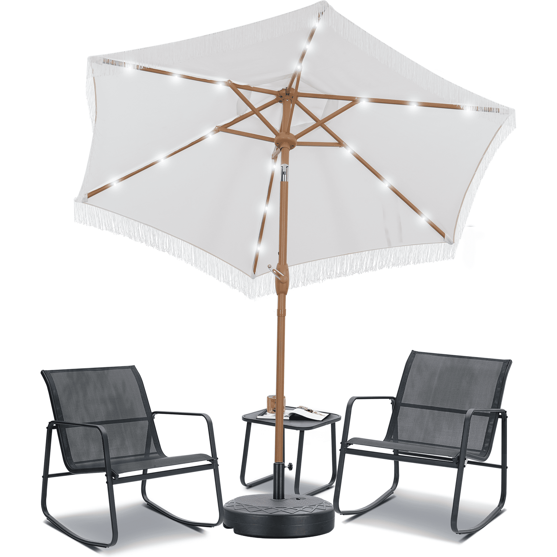 Autlaycil 5 Pcs Patio Outdoor Furniture Sets Contains 2 Textilene Fabric Rocking Bistro Chairs, a Table, a 7.5 ft Fringe Solar Umbrella with Button Tilt and a Umbrella Base, Whitw