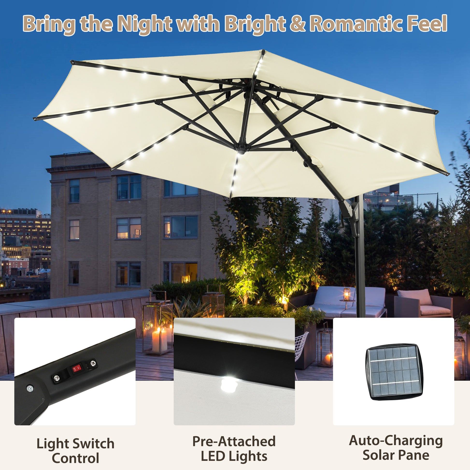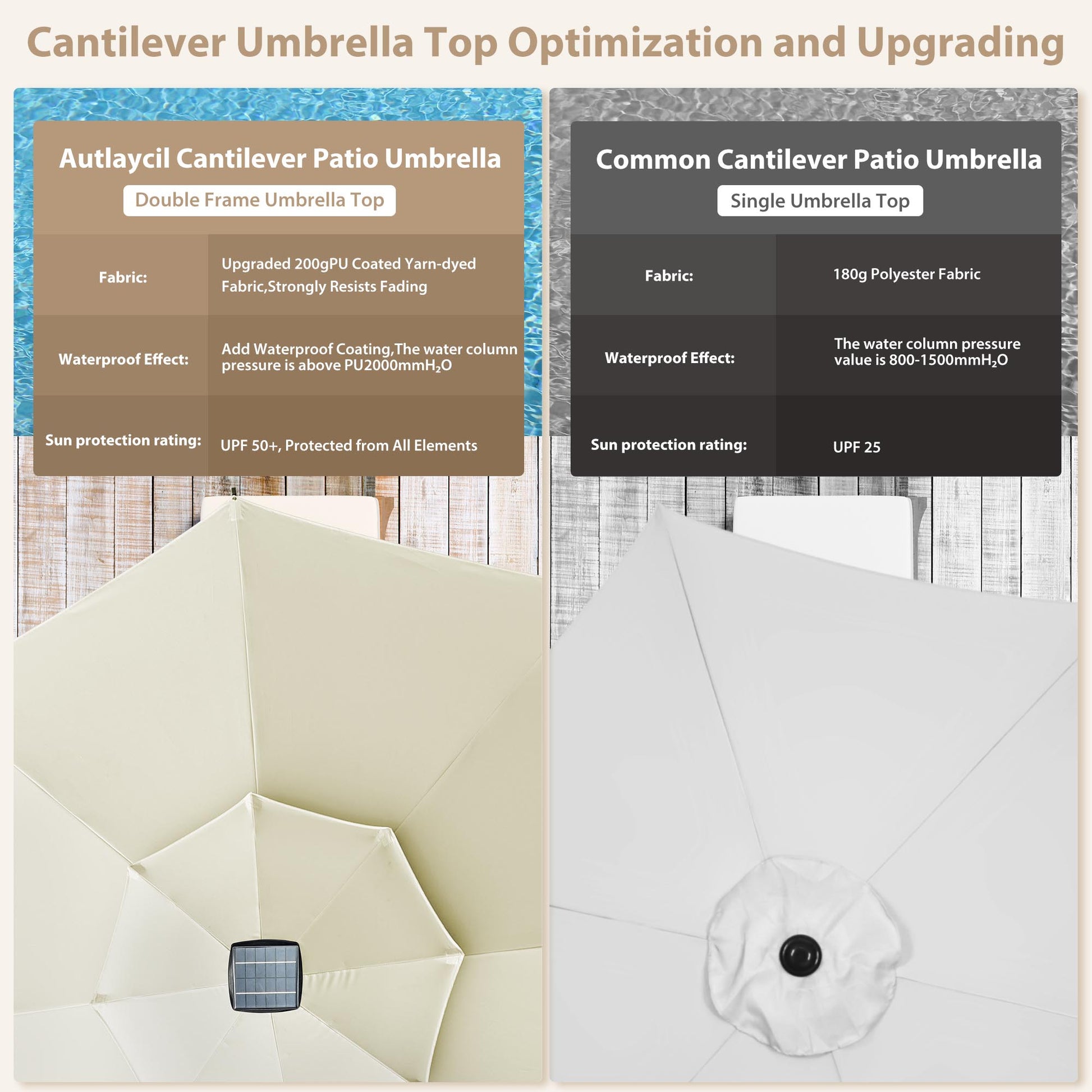 Autlaycil 5 Pcs Patio Outdoor Furniture Sets Contains 2 Wicker Furniture Patio Bistro Chairs, Table, 10 ft Solar Cantilever Umbrella and Cross Base, Beige
