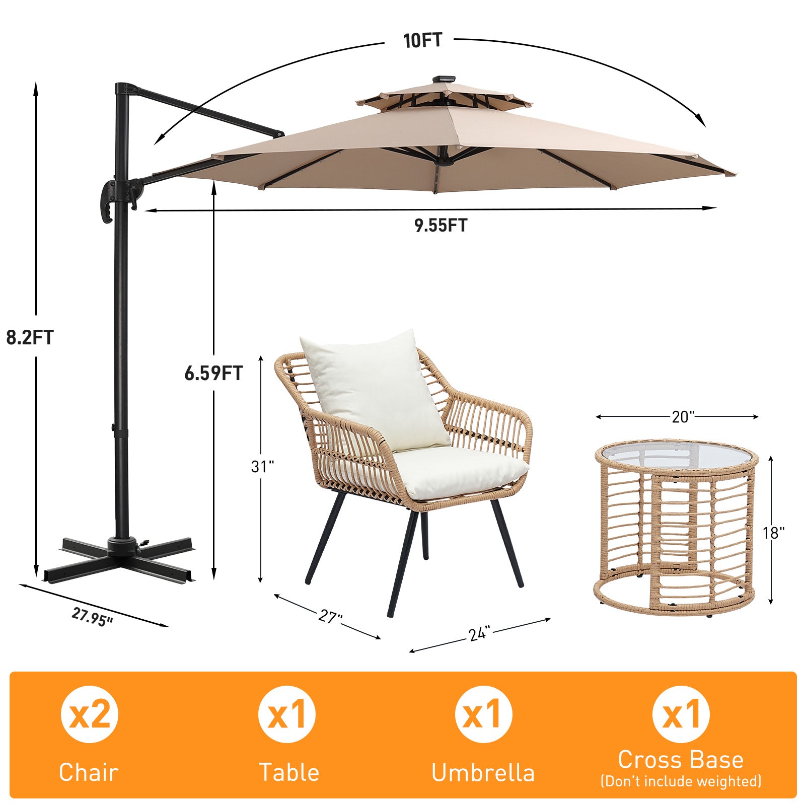 Autlaycil 5 Pcs Patio Outdoor Furniture Sets Contains 2 Wicker Furniture Patio Bistro Chairs, Table, 10 ft Solar Offset Cantilever Umbrella and Cross Base, Khaki