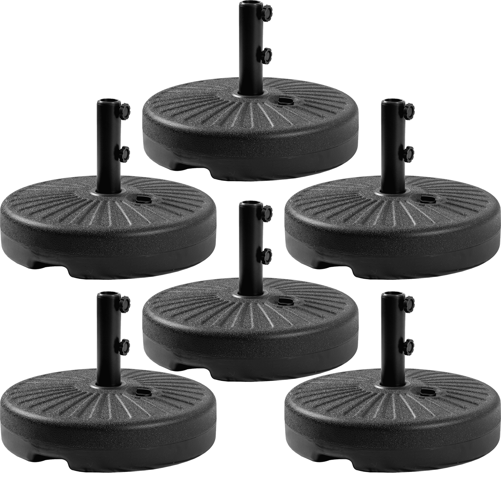 6 pcs Outdoor Umbrella BasesTwo Hand-turn Tightening Knobs for Securing Umbrella to the Base.