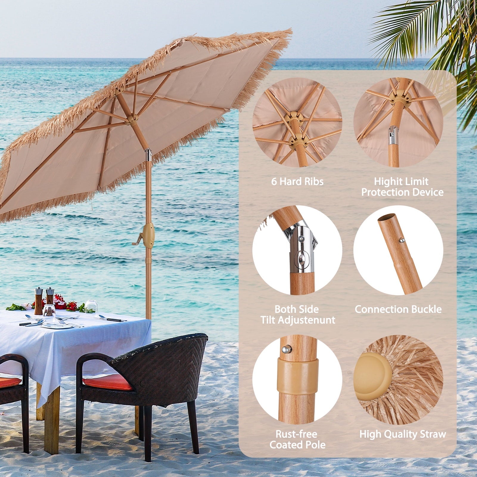 Autlaycil 7.5FT Grass Tiki Patio Umbrella Outdoor Table Umbrella with Push Button Tilt and Crank