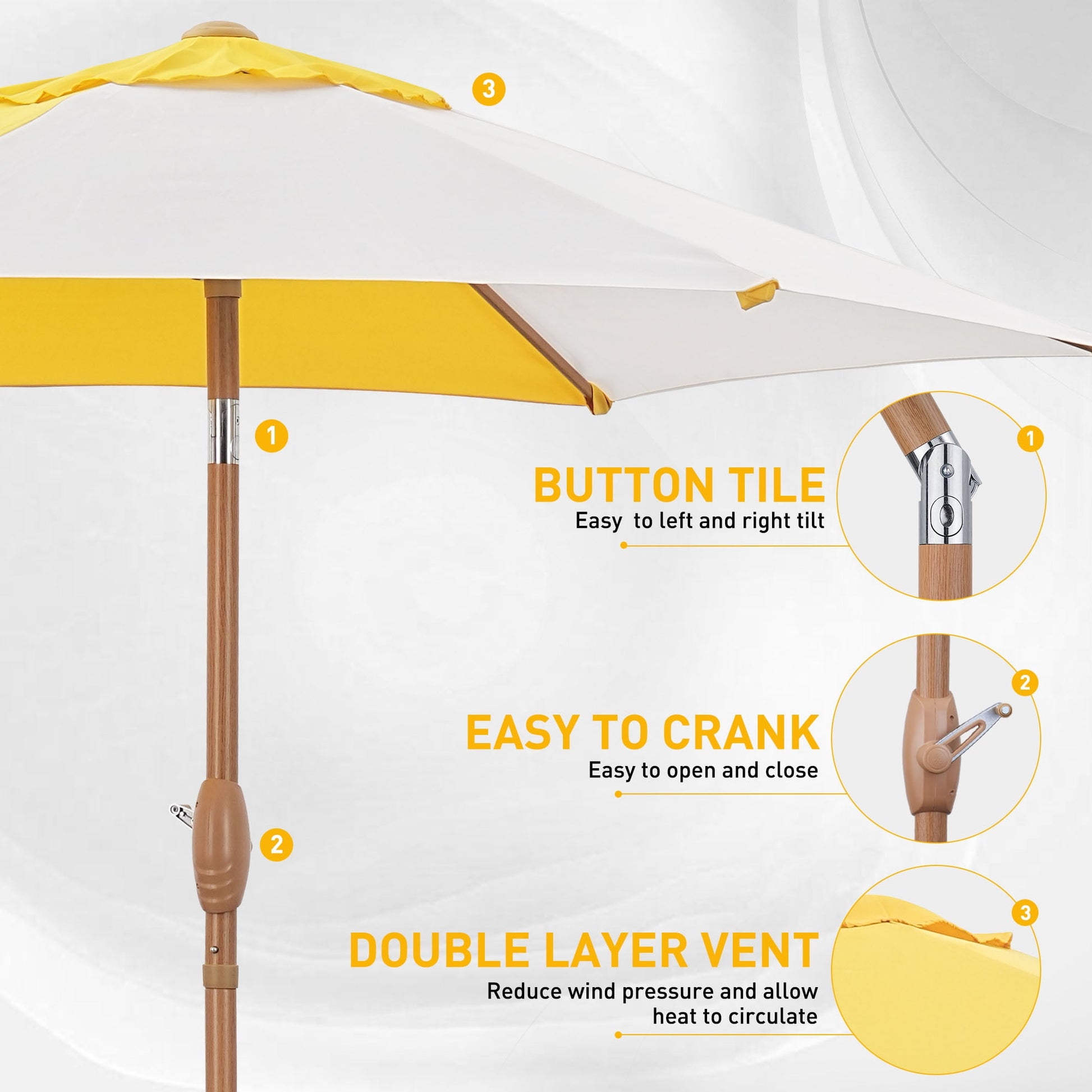 Autlaycil 7.5 ft Multicolour Patio Umbrella and Umbrella Base and 3 Piece Outdoor Wicker Furniture Patio Bistro Set, Umbrella Button Tilt, Yellow and White