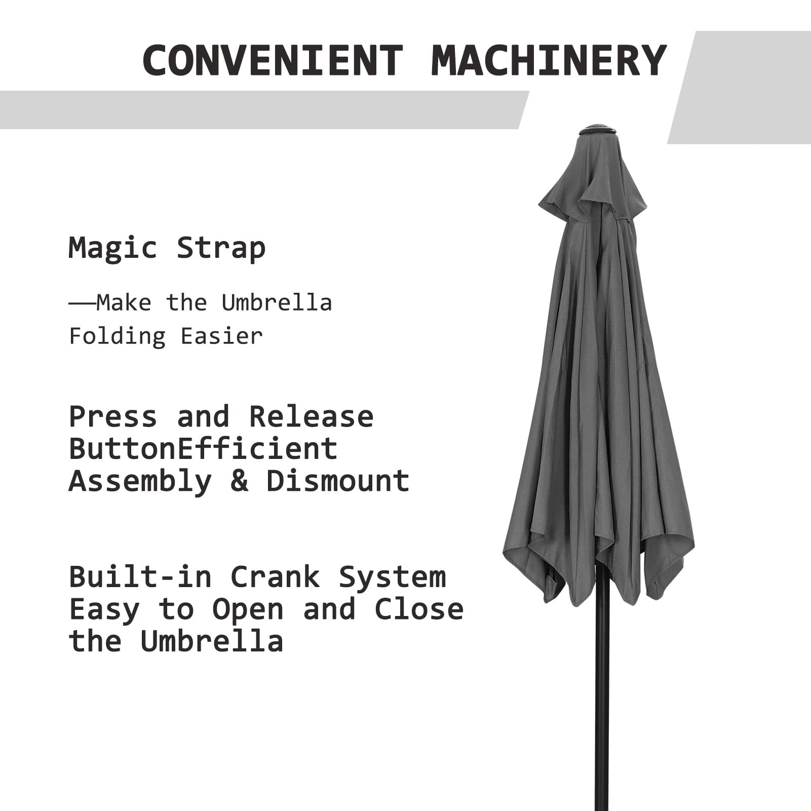 With a crank and a push button, you can easily use the outdoor umbrella to get a perfect shade. It is suitable for patio decor, bistro tables, cafe-style seating, and lounge areas.