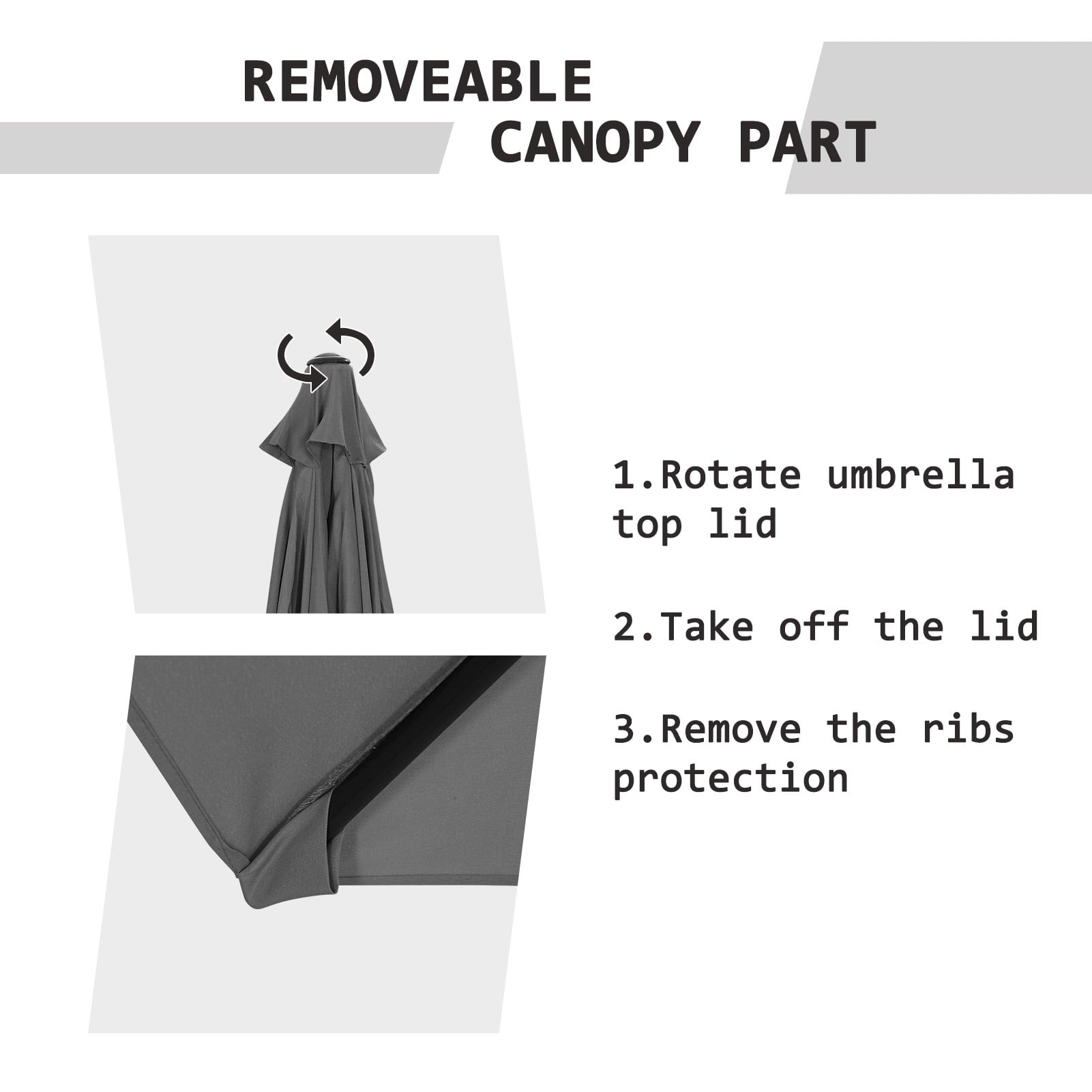 Our outdoor patio umbrella is made of rust-free steel with 6 heel stainless steel heavy-duty ribbed brackets, which make it perform better in wind and rust resistance and make the umbrella durable