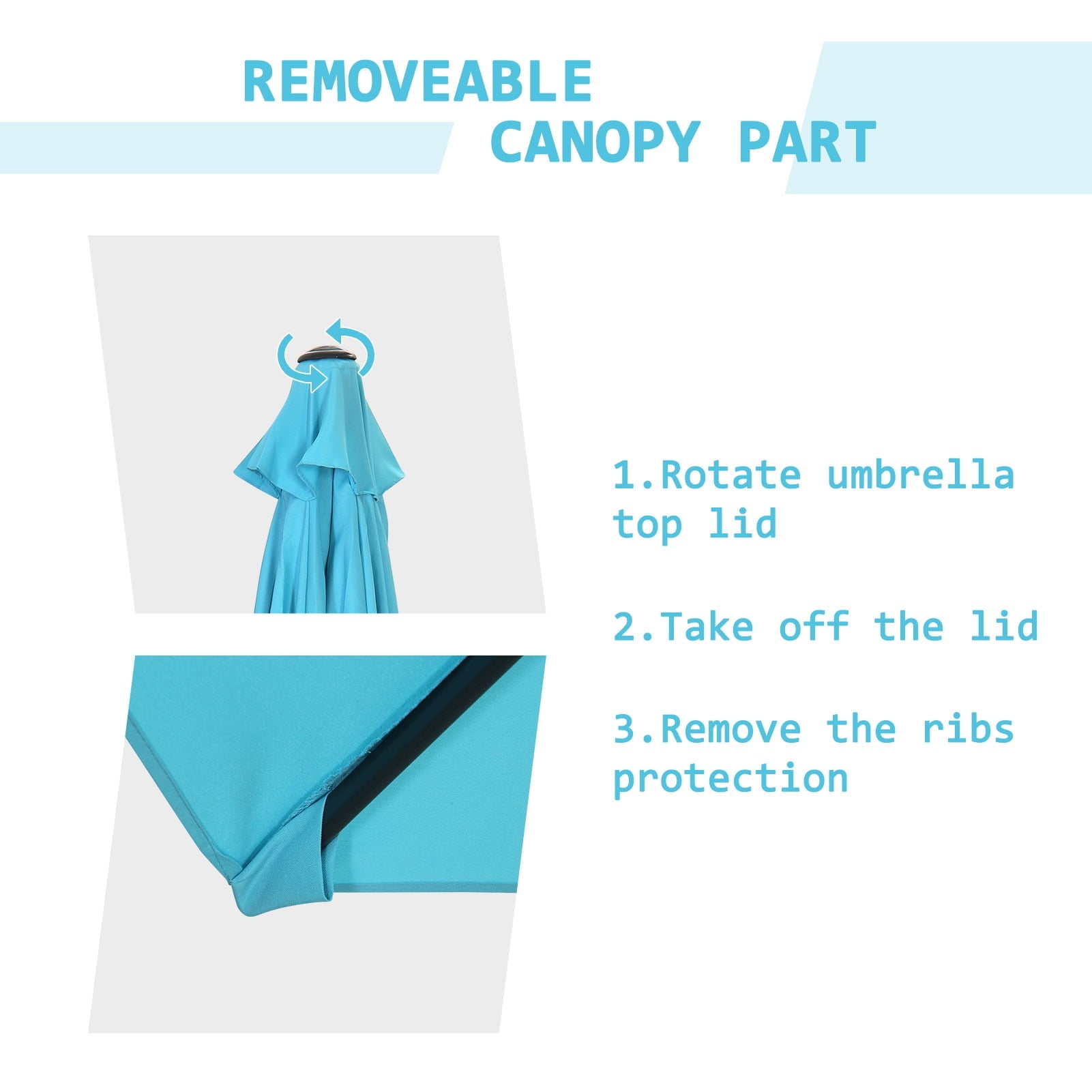 Polyester fabric features fade-resistant, water repellent, and sun protection. Protect you from the potential long-term effects of the sun and rain with our 7.5 ft Patio Umbrella.