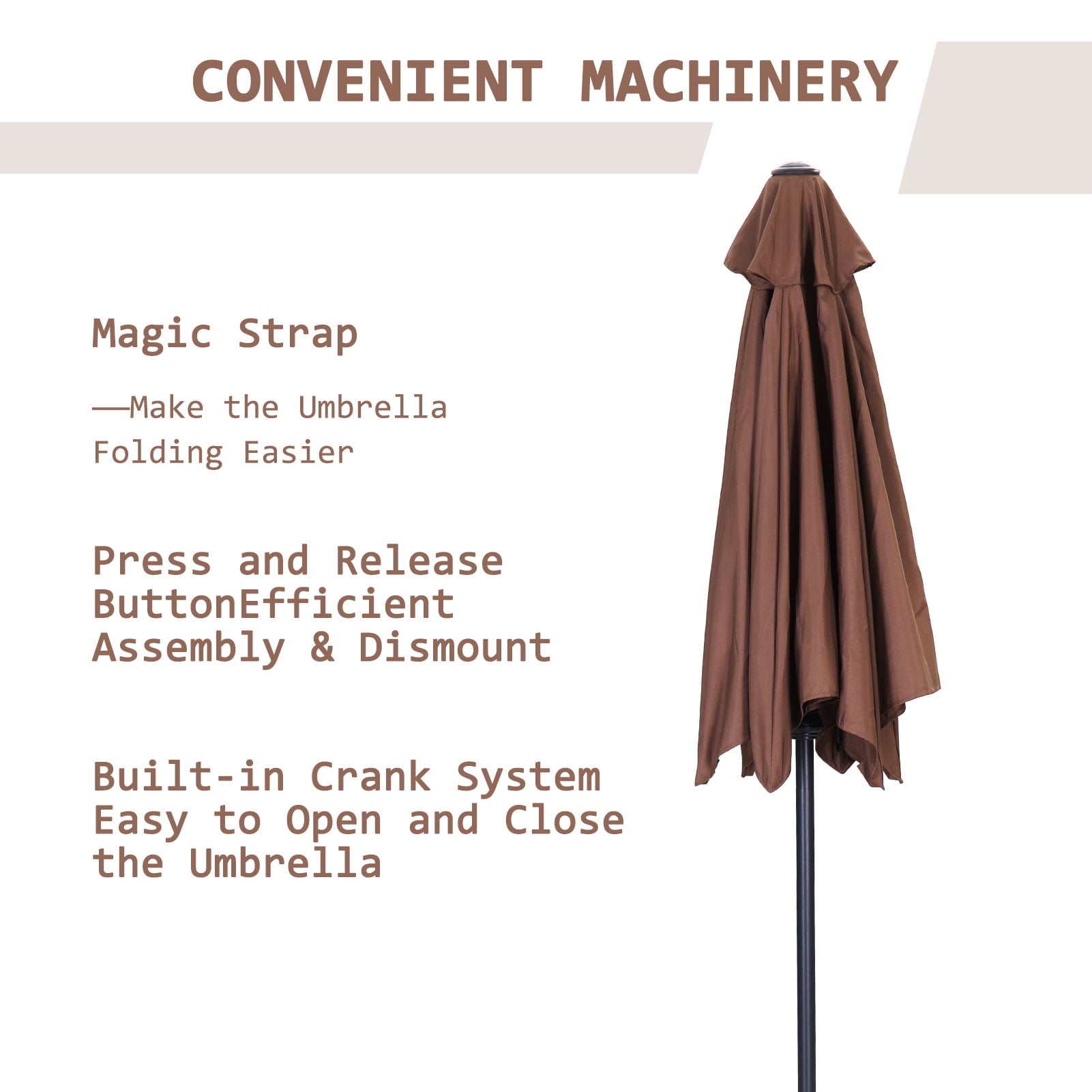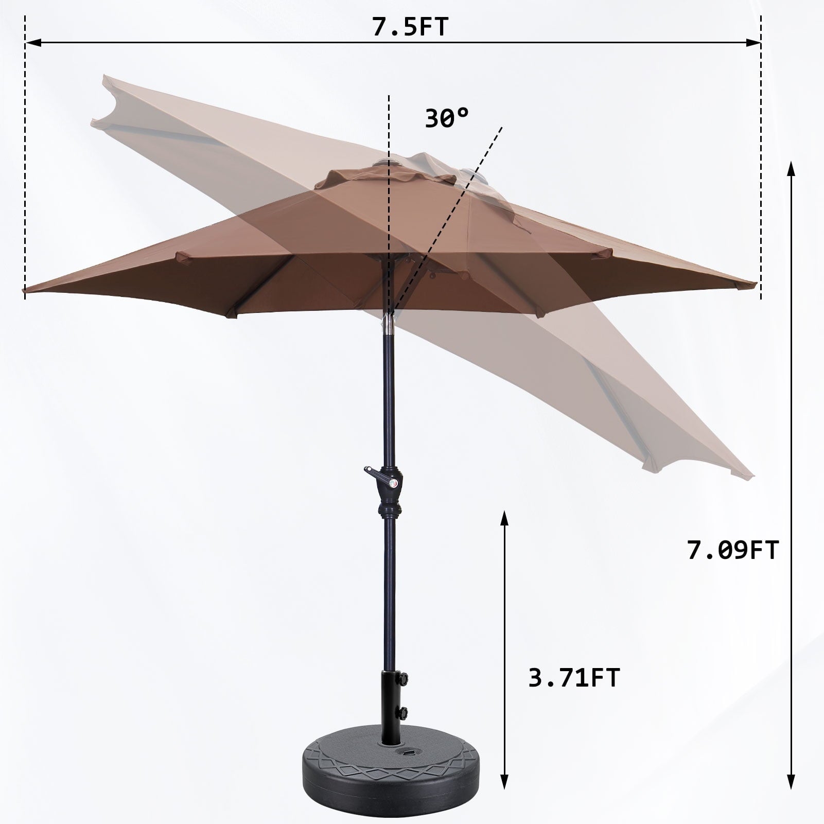 Autlaycil 7.5 ft Patio Umbrella and Umbrella Base with Tilt and Crank, Adjustable Outdoor Market Umbrellas (Coffee)