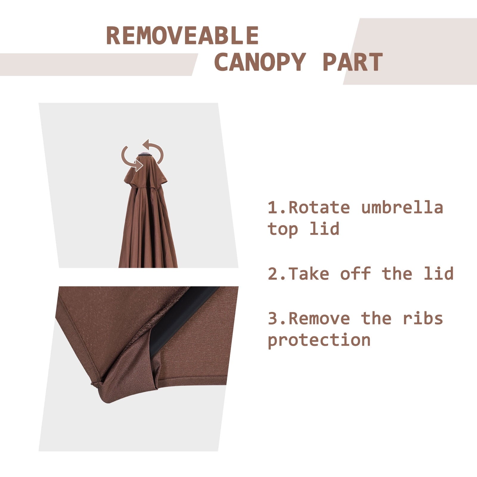 Polyester fabric features fade-resistant, water repellent, and sun protection. Protect you from the potential long-term effects of the sun and rain with our 7.5 ft Patio Umbrella.