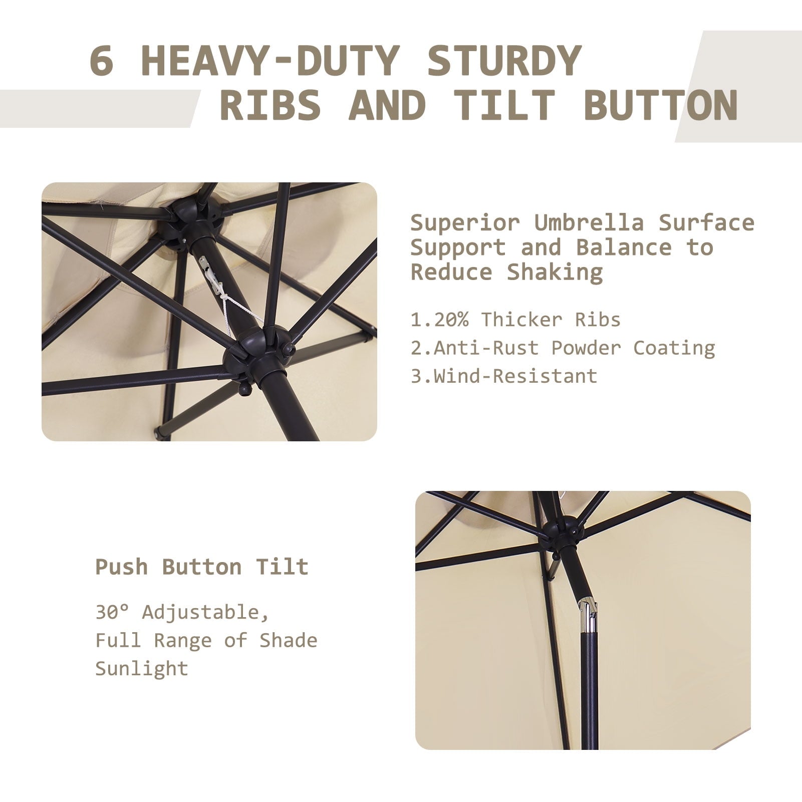 To withstand heavy wind or make it more durable in hot weather, we made it with all-iron umbrella bones and 6 sturdy ribs. Therefore, our patio umbrella can withstand repeated use.