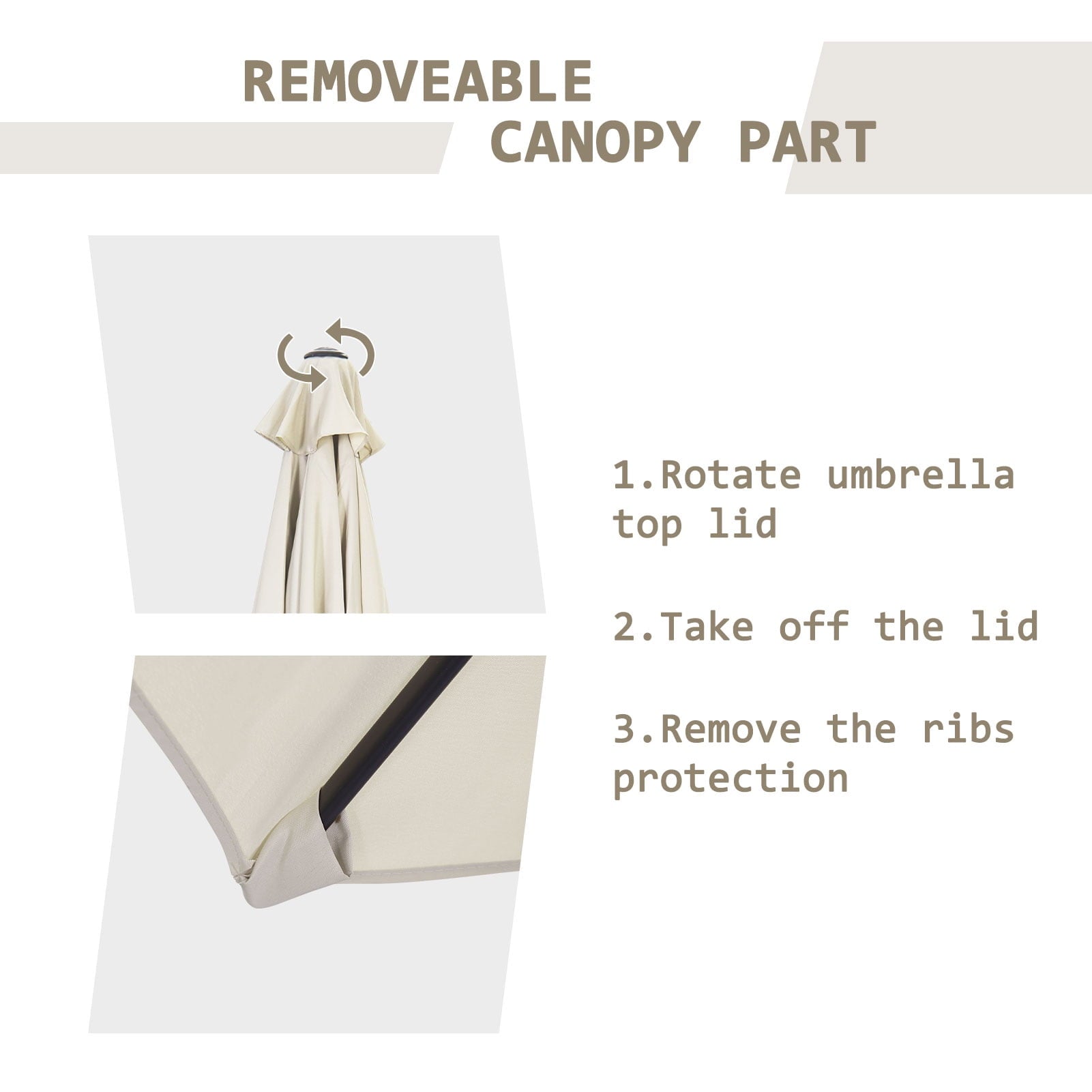 Polyester fabric features fade-resistant, water repellent, and sun protection. Protect you from the potential long-term effects of the sun and rain with our 7.5 ft Patio Umbrella.