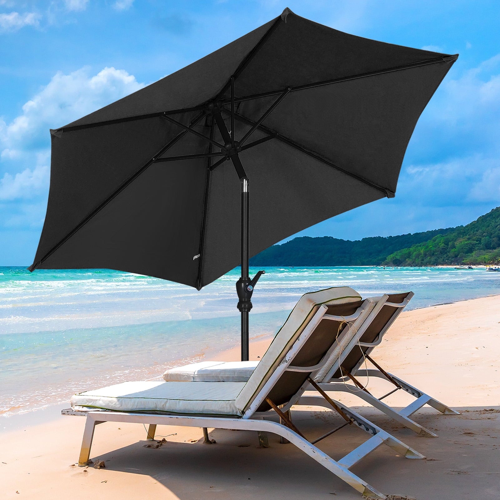 Autlaycil 7.5ft Outdoor Patio Umbrella with Tilt, Crank and Sturdy Ribs for Lawn, Garden, Backyard and Pool, Black