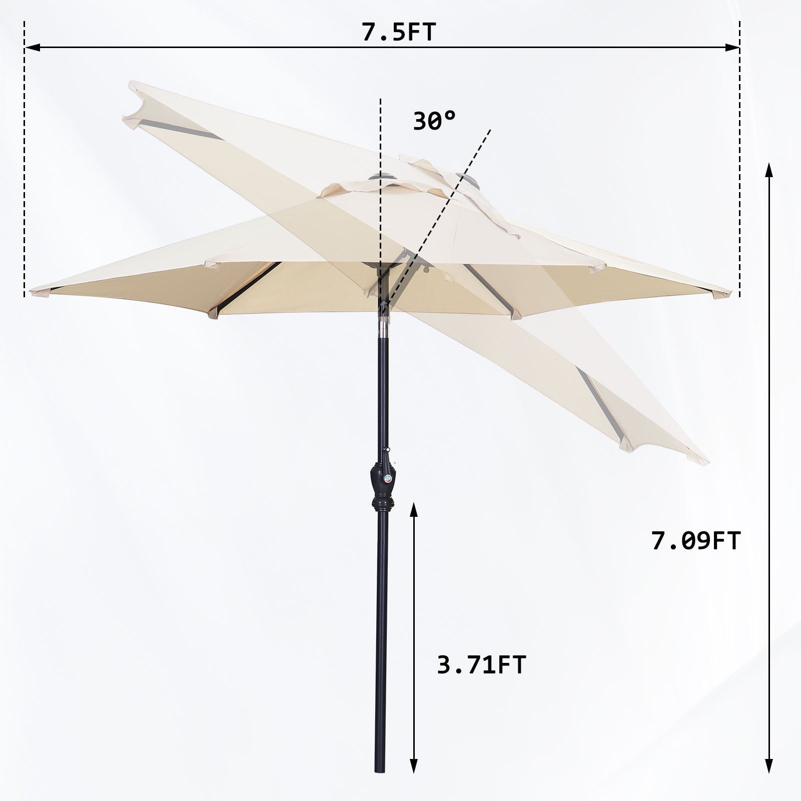 Autlaycil 7.5Ft Outdoor Umbrella with Tilt, Crank and Sturdy Ribs for Lawn, Garden, Backyard and Pool, Khaki
