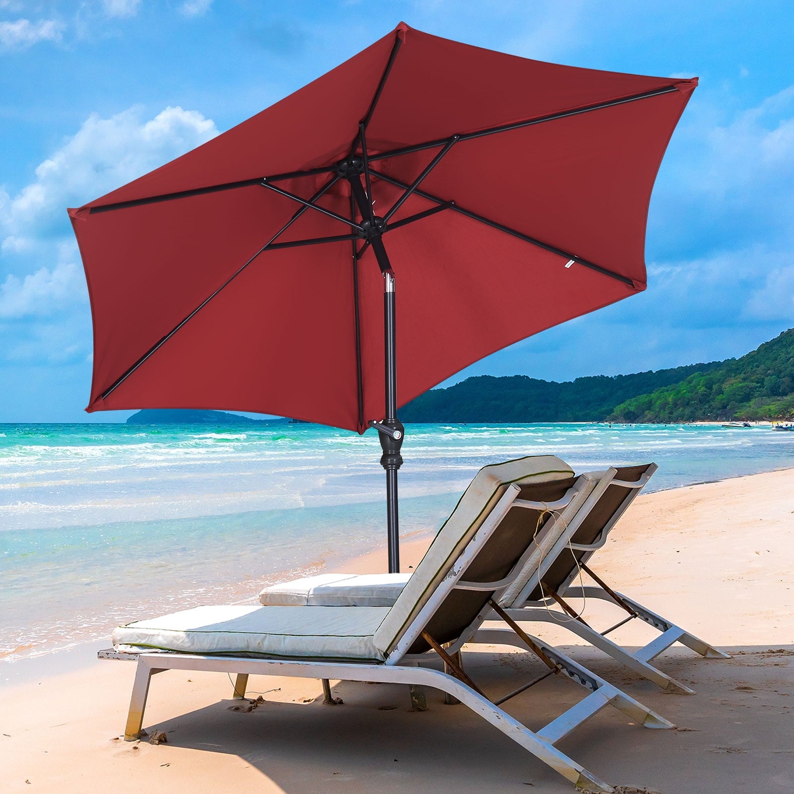 Autlaycil 7.5Ft Outdoor Umbrella with Tilt, Crank and Sturdy Ribs for Lawn, Garden, Backyard and Pool, Red