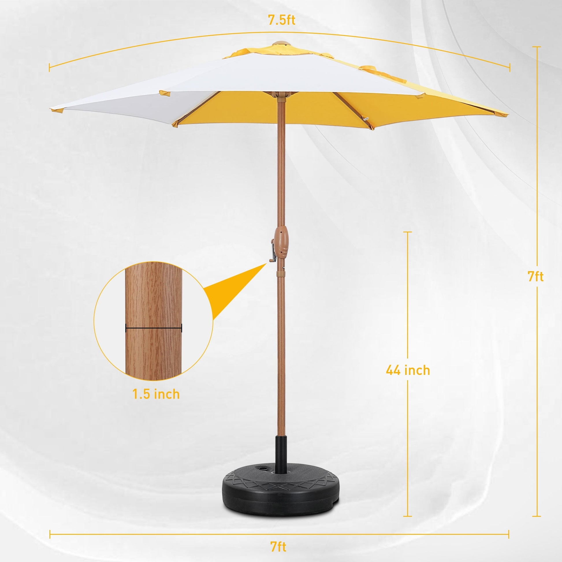 Autlaycil 7.5ft Patio Umbrella with Umbrella Base, Sun Shelter UV Protection Sunshade for Market, Beach, Patio, Pool, Garden Backyard (Yellow and White)