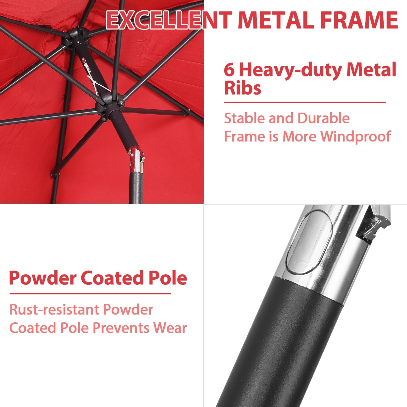 Autlaycil 9ft Outdoor Patio Umbrella 6 Ribs with Tilt and Crank Patio Table Umbrella, Red