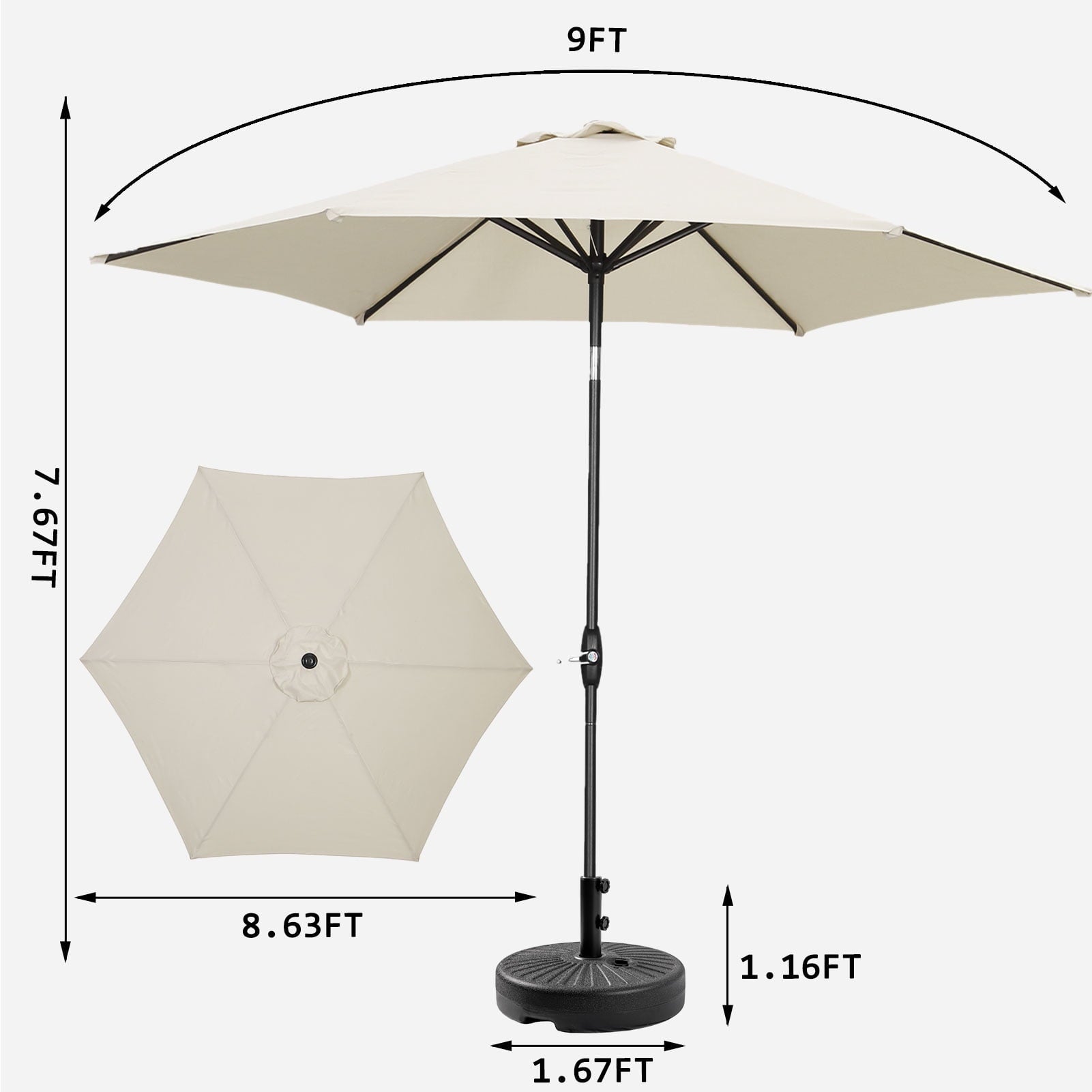 Autlaycil Patio Umbrella 9FT Outdoor Umbrella with Tilt, Crank and Umbrella Base, Adjustable Outdoor Market Umbrella for Garden, Lawn, Backyard and Pool-White